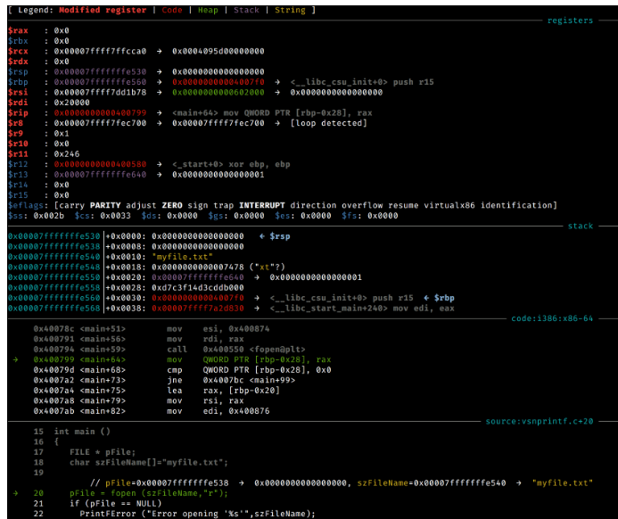 GEF is a set of commands for x86/64, ARM, MIPS, PowerPC and SPARC to assist exploit developers and reverse-engineers when using old-school GDB. It provides additional features to GDB using the Python API to assist during the process of dynamic analysis and exploit development. Application developers will also benefit from it, as GEF lifts a great part of regular GDB obscurity, avoiding repeating traditional commands or bringing out the relevant information from the debugging runtime.