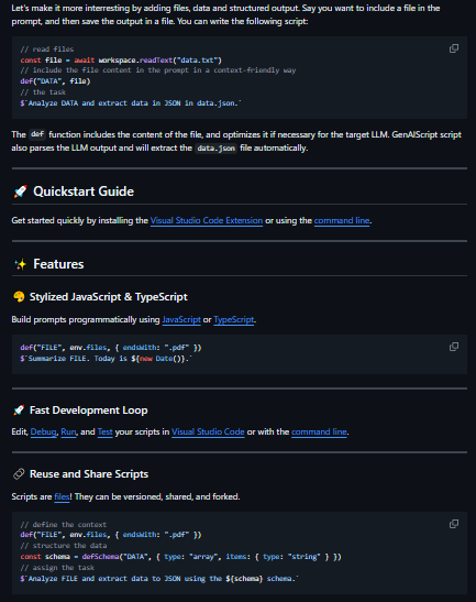 JavaScript-ish environment with convenient tooling for file ingestion, prompt development, and structured data extraction. A Microsoft tool that generates AI-powered text based on prompts, useful for content creation and automation.