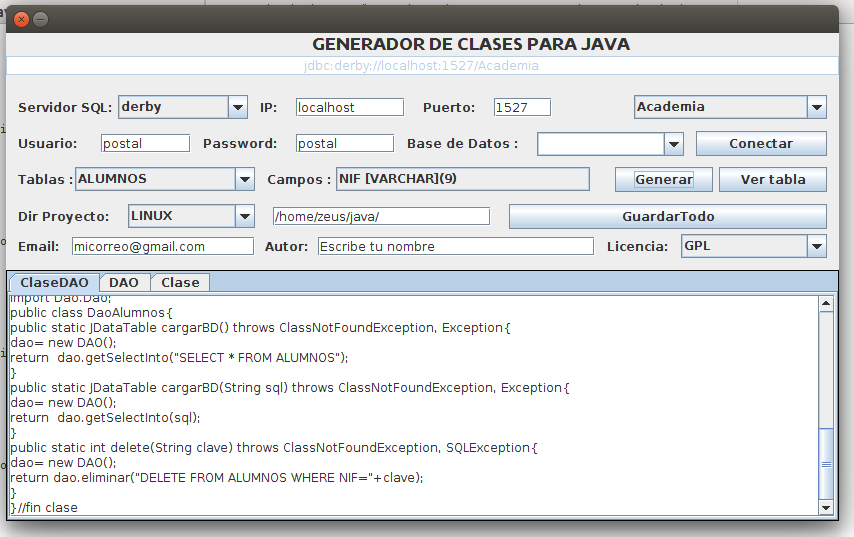 Genera codigo java de las clases de acceso a la base de datos.