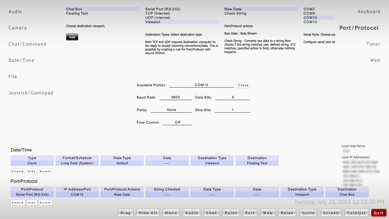 A controller program with flexibility to create custom control system. Some of the features included are internet protocols TCP and UDP, serial port, joystick/gamepad, keyboard, camera, etc.