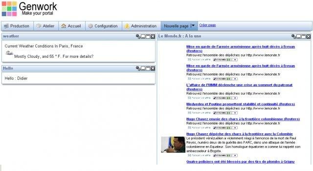Genwork stands for generic framework. It's a web portal based on widget to configure without coding. It includes object's database, rule engine and portal configurator.