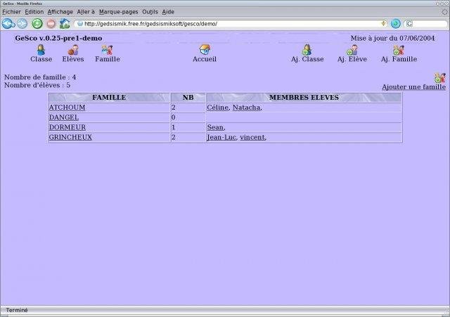 GeSco est un projet de gestion pour écoles primaires (voire maternelles). Il répertorie les élčves et les classes par classe, niveau,...