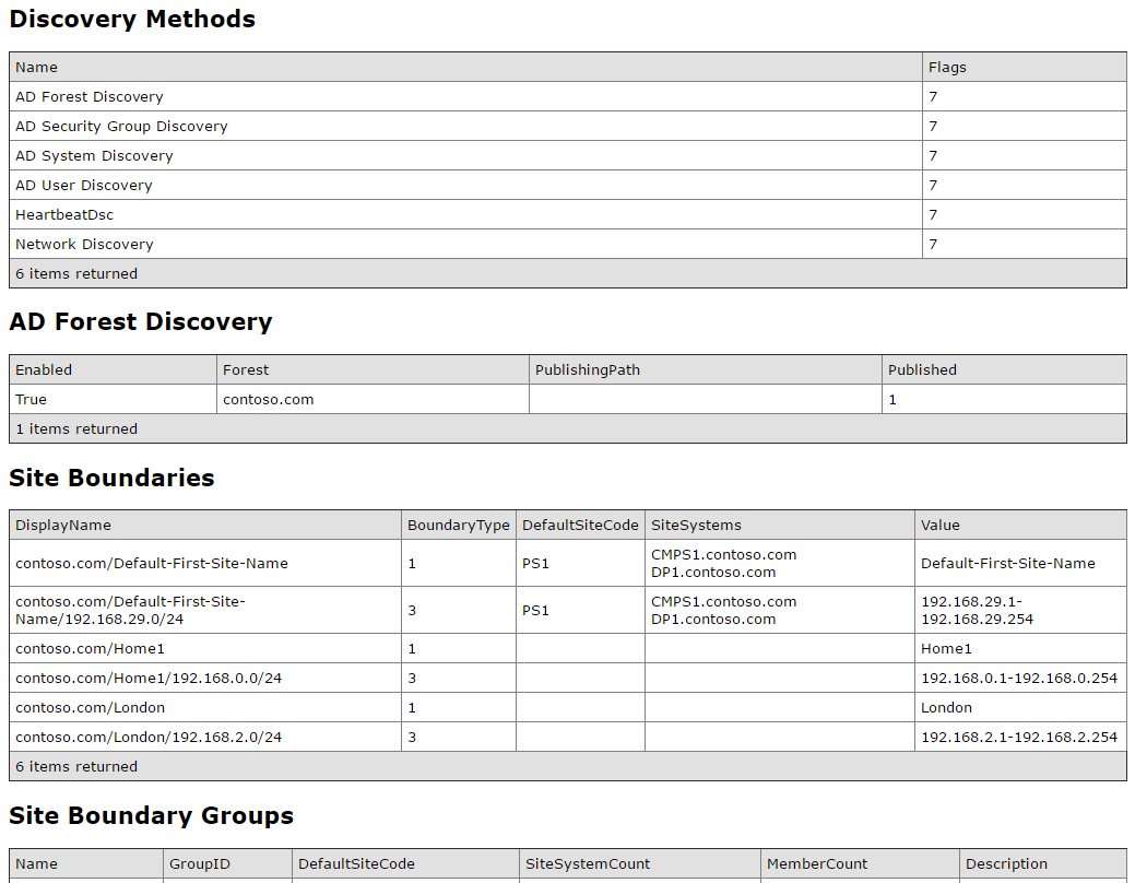A PowerShell script provided for inventorying one or more System Center Configuration Manager site servers to produce a report file. Includes AD information, Server information, SQL information, and SCCM site information.