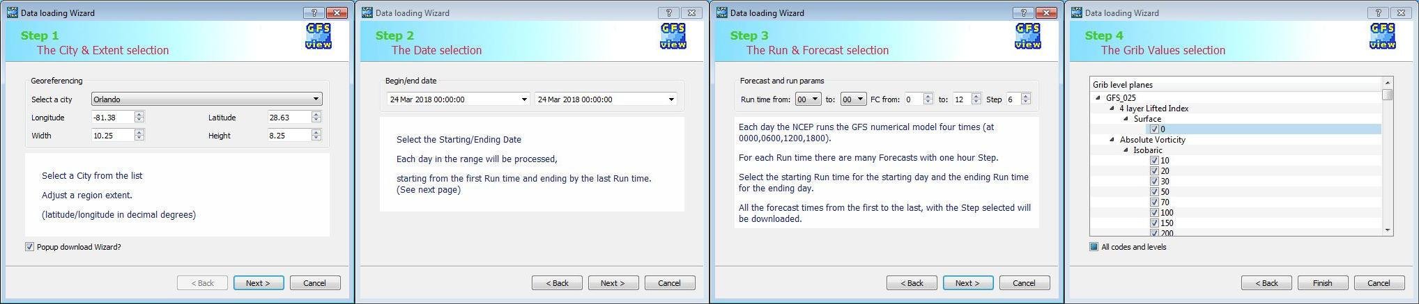 Download many data sets at once: by several days, many issued time and many forecast times, by the variable time step and any combinations of grib code-level-heights
