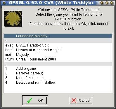 GFSGL is a program which will help you install, manage and run games on Linux and other unix-like systems. It can run native, Wine and other emulated games (using third party software). It has a console and a X11 UI.