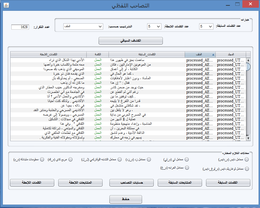 e. Two corpora frequency profile comparison based on MI, CHI, LL, T-Score, Z Score, Dice, Log Dice, Weirdness Coefficient