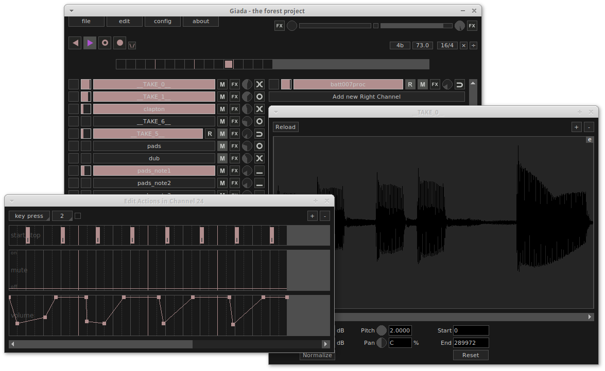 Giada is a free, minimal, hardcore audio tool for DJs and live performers. How does it work? Just pick up your channel, fill it with samples or MIDI events and start the show by using this tiny piece of software as a loop machine, drum machine, sequencer, live sampler or yet as an effect (VST and VSTi) host.