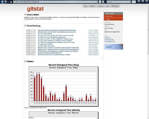gitstat is a web-based statistics and monitoring system for git, a version control system which is best known for linux kernel