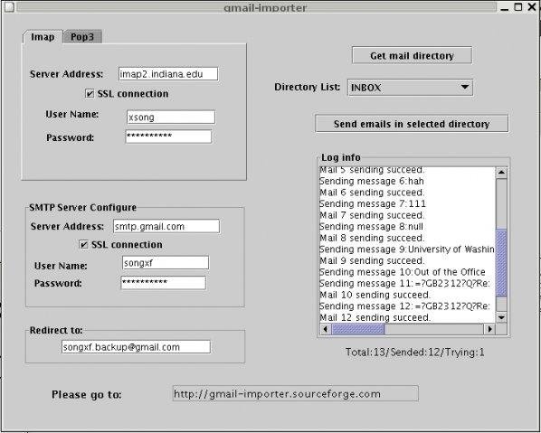 The project is written in Java to redirect your old emails from the old email servers into your any new email servers. The most usage of this software is to redirect all your old emails into your gmail account.