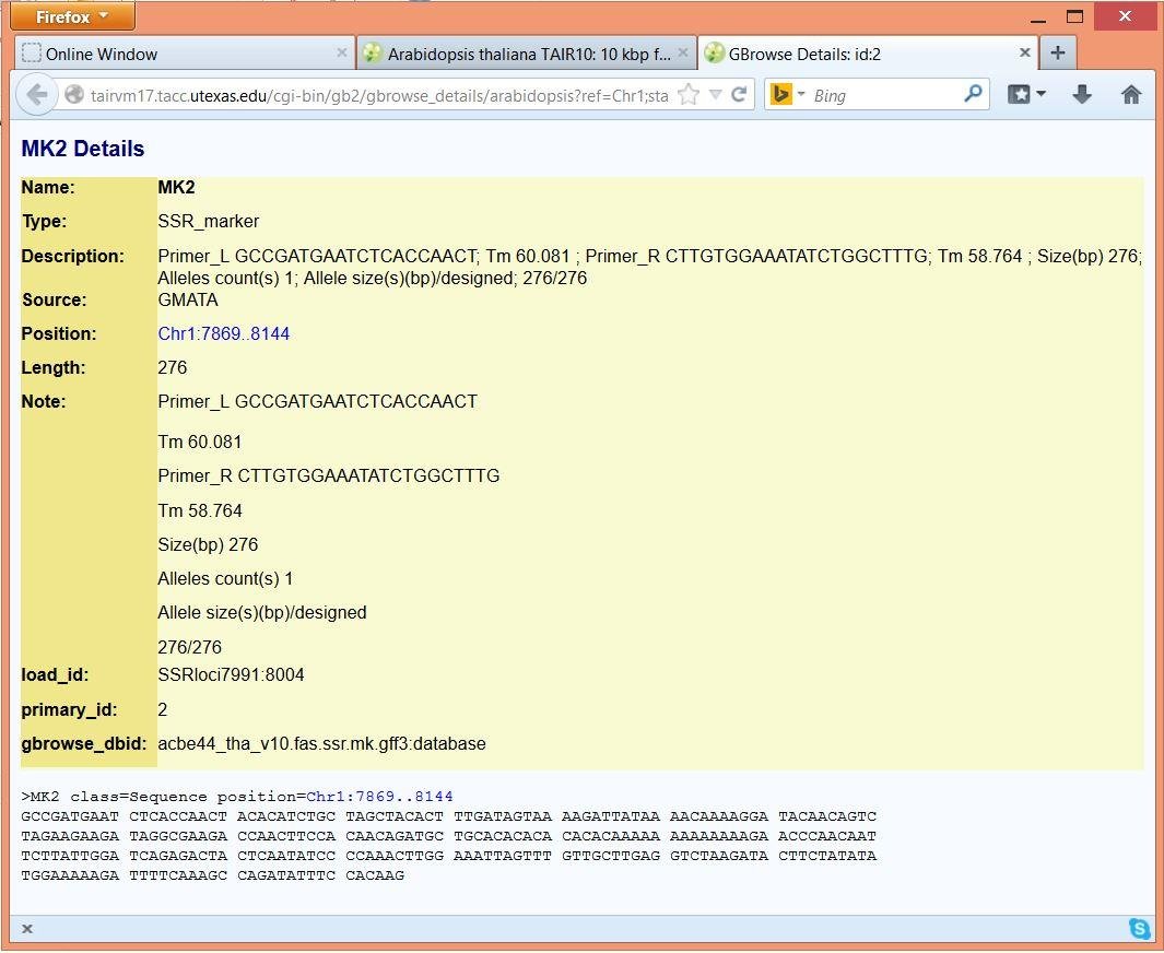 - SSR loci and marker graphic displaying in Gbrowser with genome features