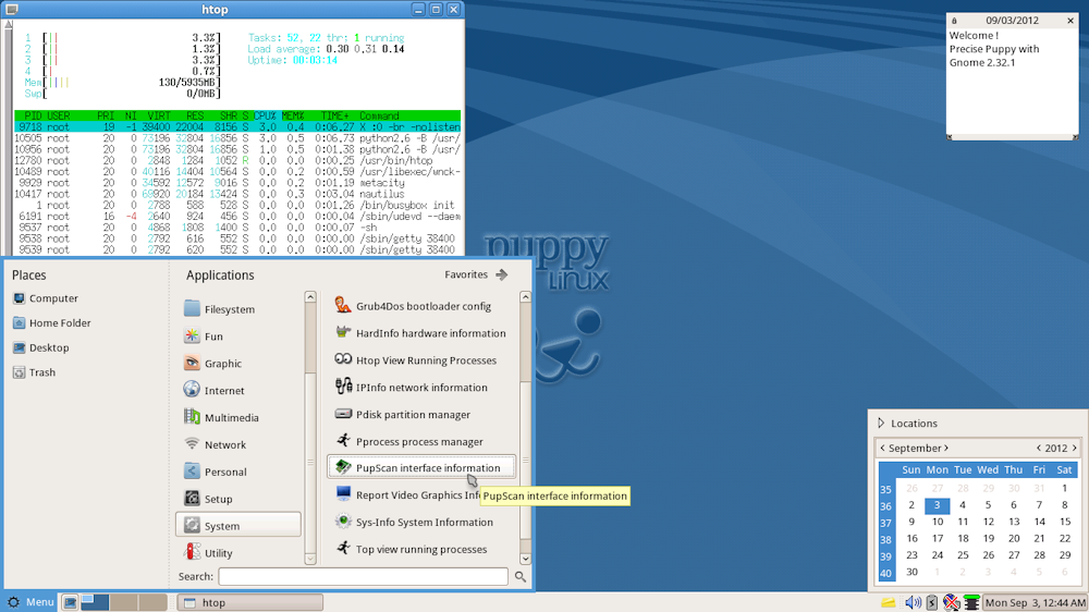 Follow Precise Puppy, Gnome 2.32.1 desktop.