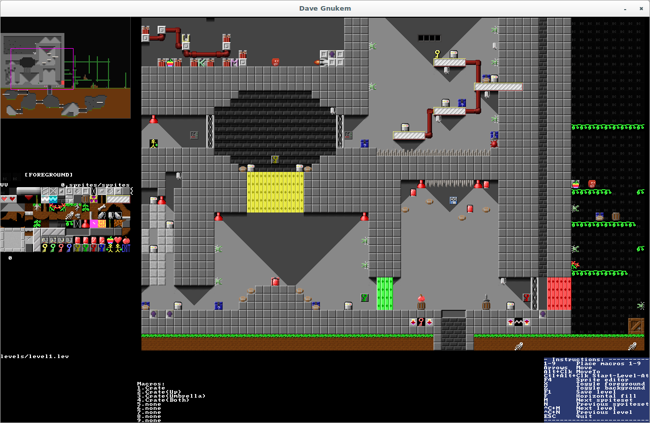Dave Gnukem is a retro-style 2D scrolling platform shooter. It is inspired by & similar to Duke Nukem 1, a famous 1991 classic. It currently runs on Windows, Linux, macOS, OpenPandora, MorphOS & more. It's not a clone or remake; it's more like a parody.