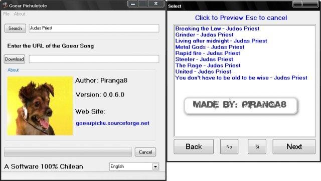 Goear Pichulotote is a software to search, preview and download mp3 of Goear it is Written in AutoIt3, is open source, and is updating everytimes.