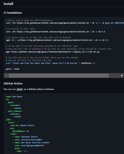 A project devoted to secure programming in the Go language. Licensed under the Apache License, Version 2.0 (the "License"). You may not use this file except in compliance with the License. You can integrate third-party code analysis tools with GitHub code scanning by uploading data as SARIF files. The workflow shows an example of running the gosec as a step in a GitHub action workflow that outputs the results.sarif file. The workflow then uploads the results.sarif file to GitHub using the upload-serif action. Gosec can be configured to only run a subset of rules, to exclude certain file paths, and produce reports in different formats. By default, all rules will be run against the supplied input files.