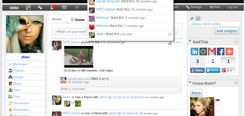 - Full-size Social network with likes, friends, groups, files, documents, polls, etc.,etc...