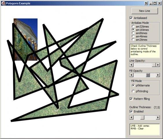 Graphics32 is a graphics library for Delphi and Lazarus. Optimized for 32-bit pixel formats, it provides fast operations with pixels and graphic primitives. In most cases Graphics32 considerably outperforms the standard TBitmap/TCanvas methods.