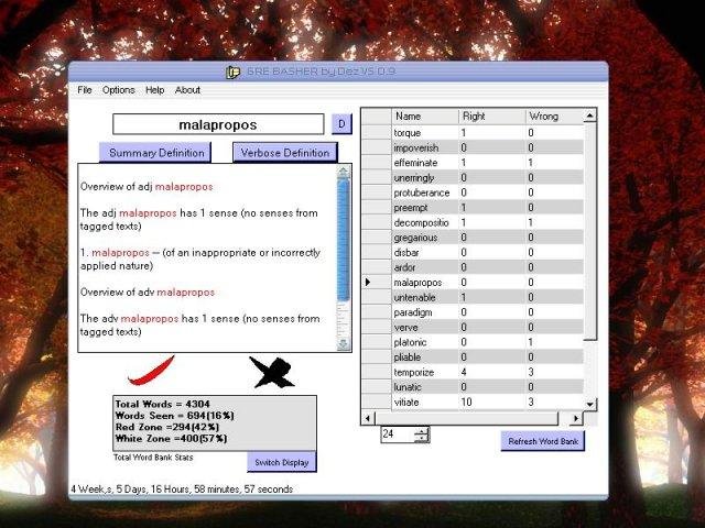 Application designed to enhance the learning of vocabulary. It is mainly targeted towards the GRE and SAT exams.