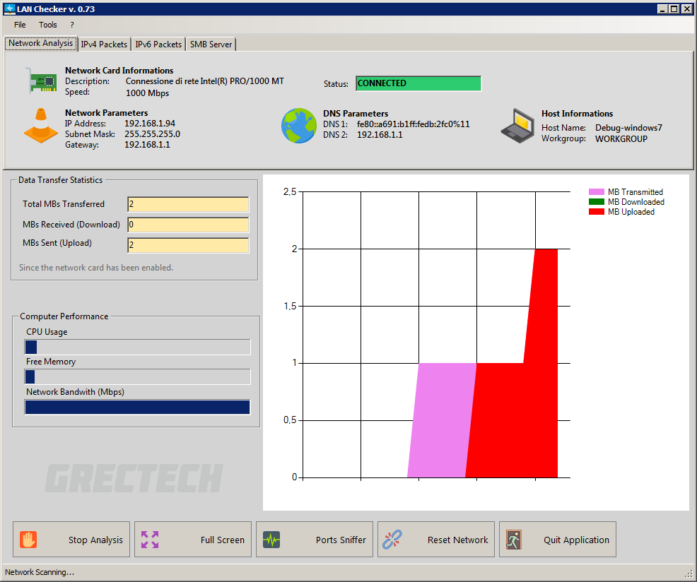 LAN Checker allows you to analyze network traffic to and from your computer. It represents the perfect solution for technicians and hobbists. We even develop this program even for security purposes: you can use it for discover malwares and spywares that uses your network.