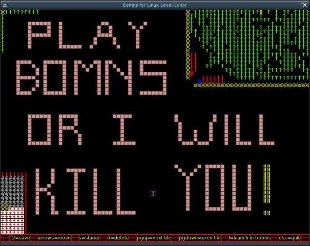 Bomns for Linux is a fast-paced multiplayer deathmatch arcade game, which uses SDL for its graphics and sound. Its gameplay is best described as "old-school," as it's based on the ever-popular text-based Bomns franchise.