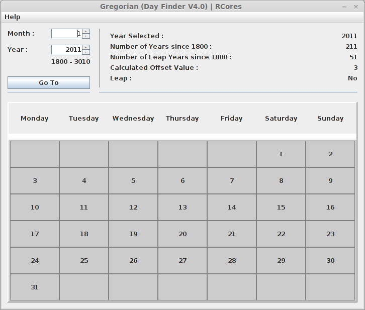 - Builds lifetime gregorian calendar