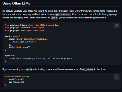 - By default, Griptape uses OpenAI's gpt-4 to drive the core agent logic