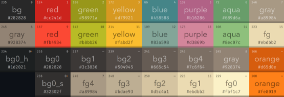 gruvbox is heavily inspired by badwolf, jellybeans and solarized. Designed as a bright theme with pastel 'retro groove' colors and light/dark mode switching in the way of solarized. The main focus when developing gruvbox is to keep colors easily distinguishable, contrast enough and still pleasant for the eyes. Extended filetype highlighting, Html, Xml, Vim, Clojure, C, Python, JavaScript, TypeScript, PureScript, CoffeeScript, Ruby, Objective-C, Go, Lua, MoonScript, Java, Markdown, Haskell, Elixir. The supported plugins are EasyMotion, vim-sneak, Indent Guides, indentLine, Rainbow Parentheses, Airline, Lightline, GitGutter, Signify, ShowMarks, Signature, Syntastic, Ale, CtrlP, Startify, NERDTree, Dirvish, and more. If you're using GUI version of vim that should be enough. By default gruvbox will act as usual 256-color theme, but colors wouldn't be that vivid due to limitations of 256-palette.