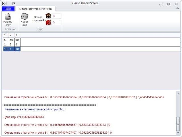 Dealing with the Game Theory. Solver antagonistic (matrix) games.