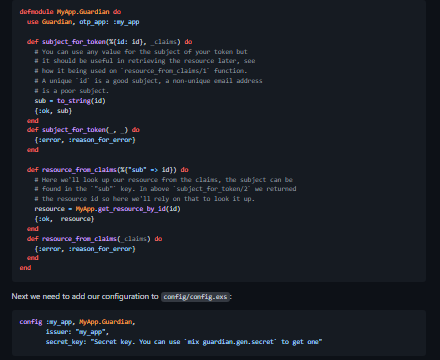 Guardian is a token based authentication library for use with Elixir applications. Guardian remains a functional system. It integrates with Plug but can be used outside of it. If you're implementing a TCP/UDP protocol directly or want to utilize your authentication via channels in Phoenix, Guardian can work for you. The core currency of authentication in Guardian is the token. By default JSON Web Tokens are supported out of the box but you can use any token that Has the concept of a key-value payload, is tamper-proof, can serialize to a String, or that has a supporting module that implements the Guardian.Token behavior. You can use Guardian tokens to authenticate web endpoints (Plug/Phoenix/X), channels/Sockets (Phoenix - optional), and any other system you can imagine. If you can attach an authentication token you can authenticate it.