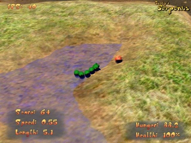 Gusty's Serpents is a 3D adaptation of the classic "Snake" type of games. Control a moving snake and collect various objects on the map. The game takes place in a 2D plane, although it provides 3D graphics (powered by OGRE).