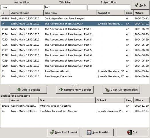 GutenPy is a comfortable text reader and catalog browser for Project Gutenberg. It features handy bookmarking, word definition lookups, and powerful catalog browser that uses regular expression filtering.