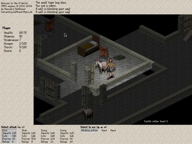 The H-World CRPG engine is a tile-based, turn-based, Lua scriptable engine that supports a nice graphical, isometric display. It can support a single personal character as well as parties. There is AI support for both combat and non-combat actions.