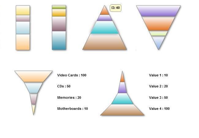 - Radial and lineal meters, pie, ring, signal, digital and led, piramid, funnel and more charts