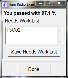 Ham Radio Exam is a program to help prepare for one of the FCC amateur radio exams (technician, general, or extra). The program allows you to take practice exams or all the questions in a section. You can save a list of questions to test on later.