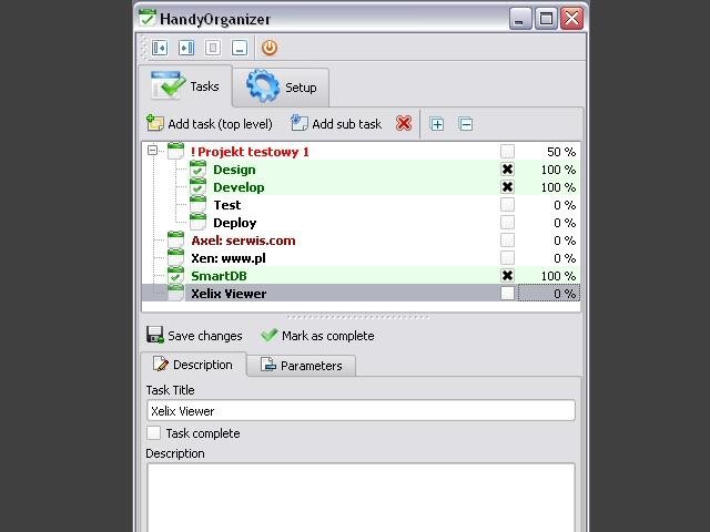 Handy Organizer is a personal information manager (PIM). It contains a Task manager, Notes module and Alarms/Reminder module.