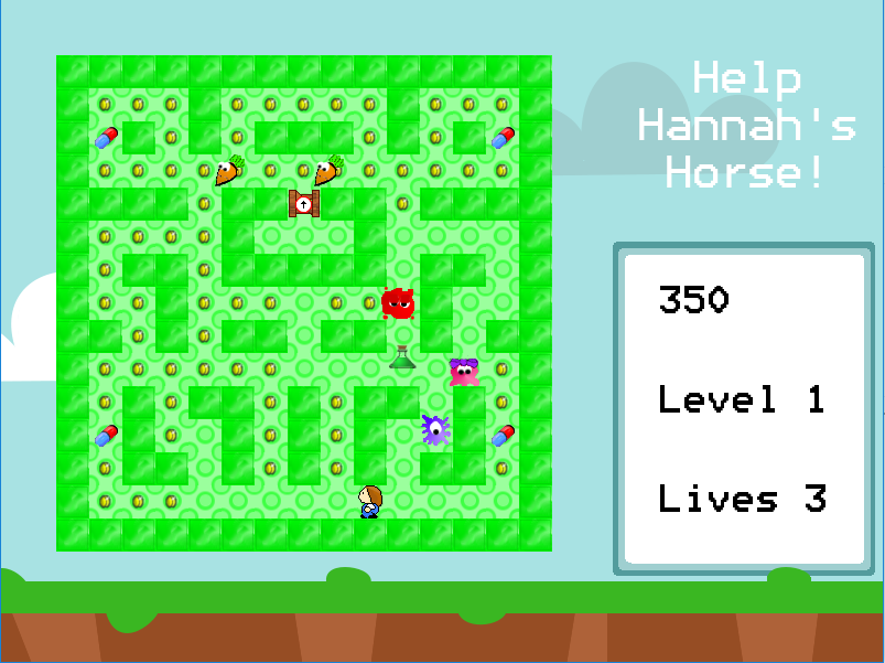 Remember the 1990's home micro game Fast Food starring Dizzy? No? Well this is a bit like if that game and Pacman had a baby. Navigate the mazes collecting the coins, powerpills and moving food while avoiding the ghosts and making use of the power ups.