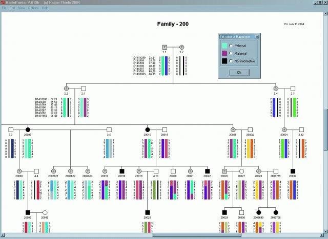 HaploPainter - a pedigree and haplotypes drawing tool written in Perl/Tk. The software processes pedigree information in standard linkage formats combining haplotype information outputs from Simwalk, Genehunter, Allegro and Merlin.