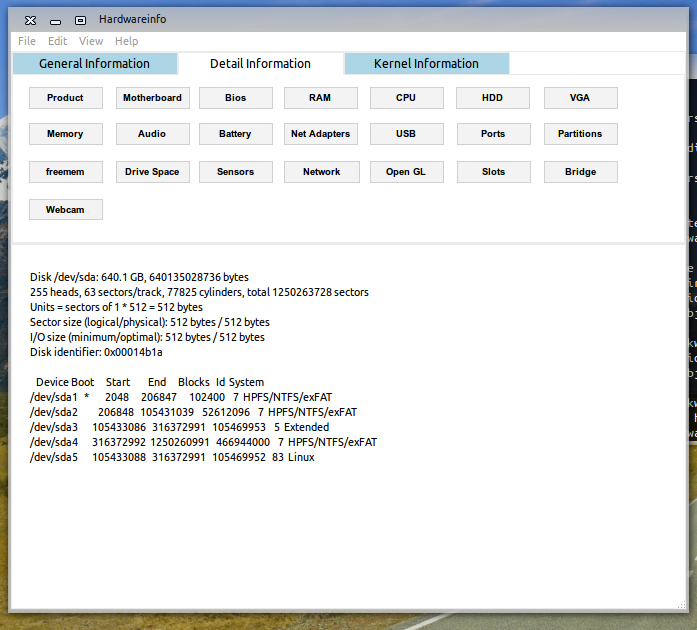 Hardwareinfo is a application to show information about your system hardware and software!