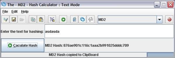This is a Hash Calculating tool that calculates MD2,MD5,SHA-1,SHA-256,SHA-384,SHA-512 hash of text or a file. This has GUI developed in java swings.All it needs is sun jre installed.