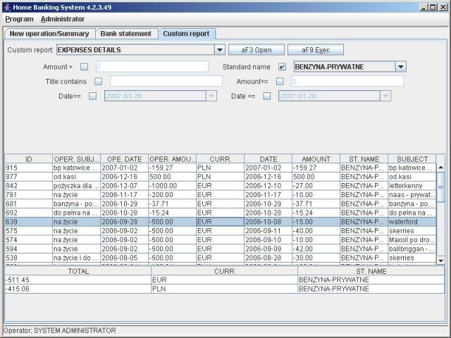 Home Banking System is a tool that helps you track all your financial operations. Apart from your bank accounts, it allows you to track all your expenses. You can view various reports-e.g. how much did you spend on food in the last two months.