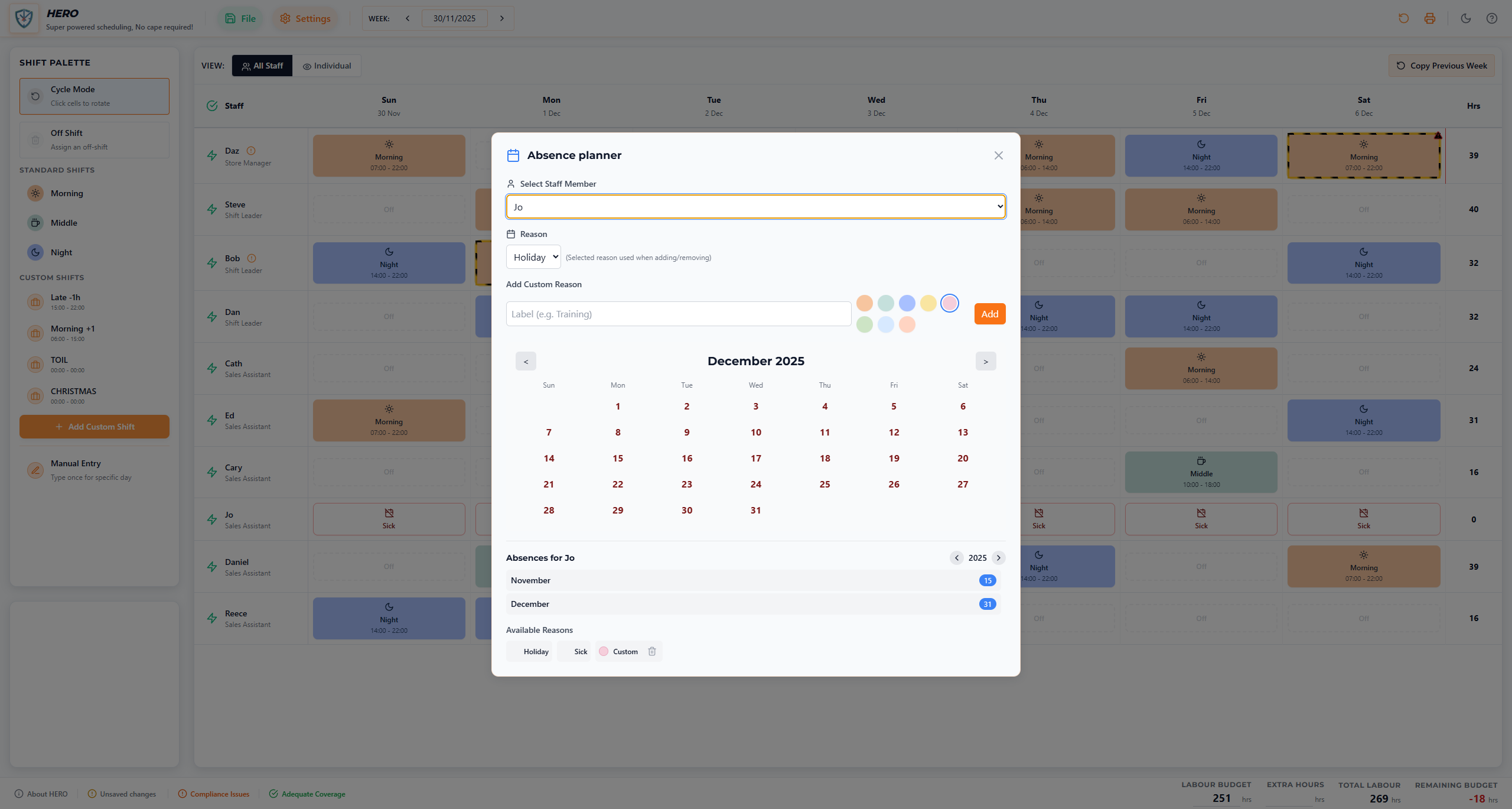 Say goodbye to scheduling conflicts and labour law violations. HERO Planner empowers managers to build better rotas, faster. Whether managing a small team or a large operation, become the scheduling hero your business needs.
