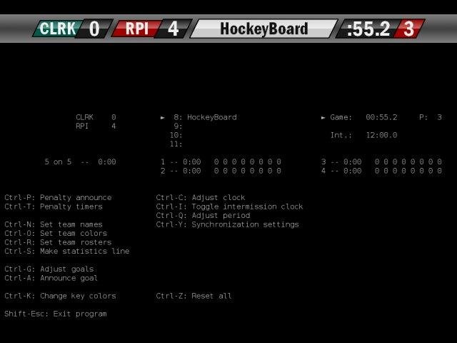 Program for displaying and operating an on-screen scoreboard for television broadcast of hockey games.
