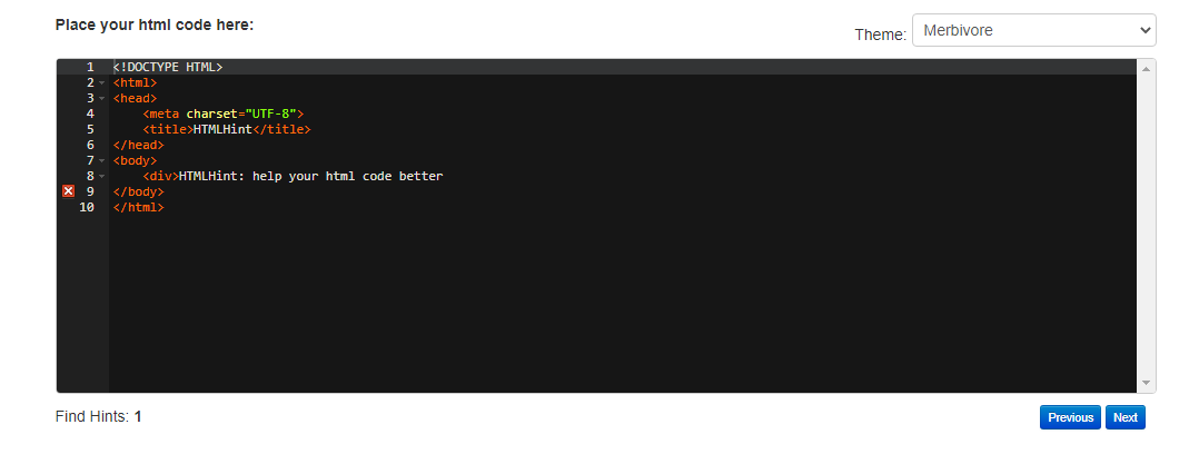 Static code analysis tool you need for your HTML. By default, htmlhint looks for a .htmlhintrc file in the current directory and all parent directories and applies its rules when parsing a file.