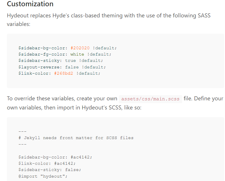 Hydeout updates the original Hyde theme for Jekyll 3.x and 4.x and adds new functionality. In keeping with the original Hyde theme, Hydeout aims to keep the overall design lightweight and plugin-free. JavaScript is currently limited only to Disqus and Google Analytics (and is only loaded if you provide configuration variables). Hydeout makes heavy use of Flexbox in its CSS. If Flexbox is not available, the CSS degrades into a single-column layout.