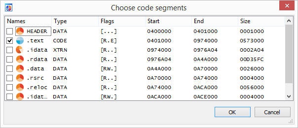 3) SegmentSelect: A memory segment dialog to allow user to select one or more for processing.