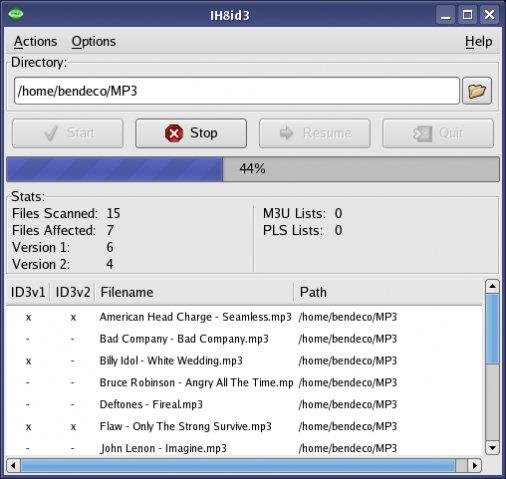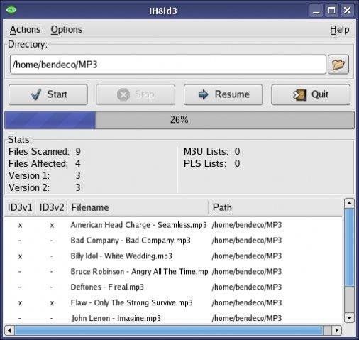 IH8id3 can recursively remove id3 tags from mp3 files. It has a unique graphical interface and list which files where modified. The application supports both id3v1 and id3v2 tags. IH8id3 is a simple, fast solution to removing thousands of tags at once.