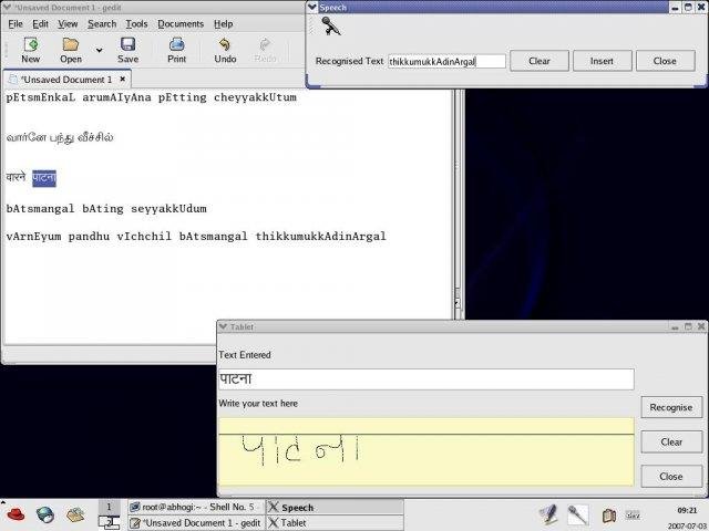 Augmenting other natural interfaces namely handwriting, speech recognition to input Indian language characters to the computer. Speech synthesis is also provided to read out local language text.