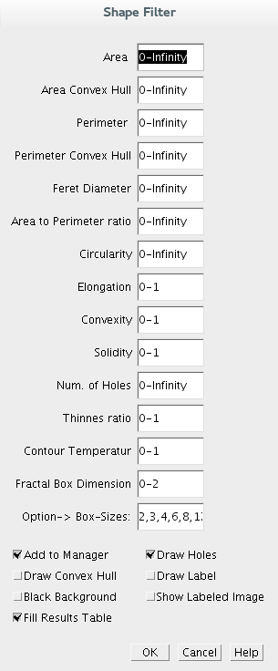 The ImageJ *Shape Filter Plugin* (see downloads) uses this library for flitering the blobs by its shape.