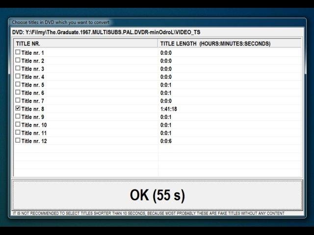 - if you pause the starting of new conversions and you forget it, then aplication in five minutes will (if there is no mouse activity over application) disable this pause and start conversion (this is good for always absent-minded people like me); the window with avaiable audio/subtitles tracks or titles will also dissapear in 60 seconds automaticaly