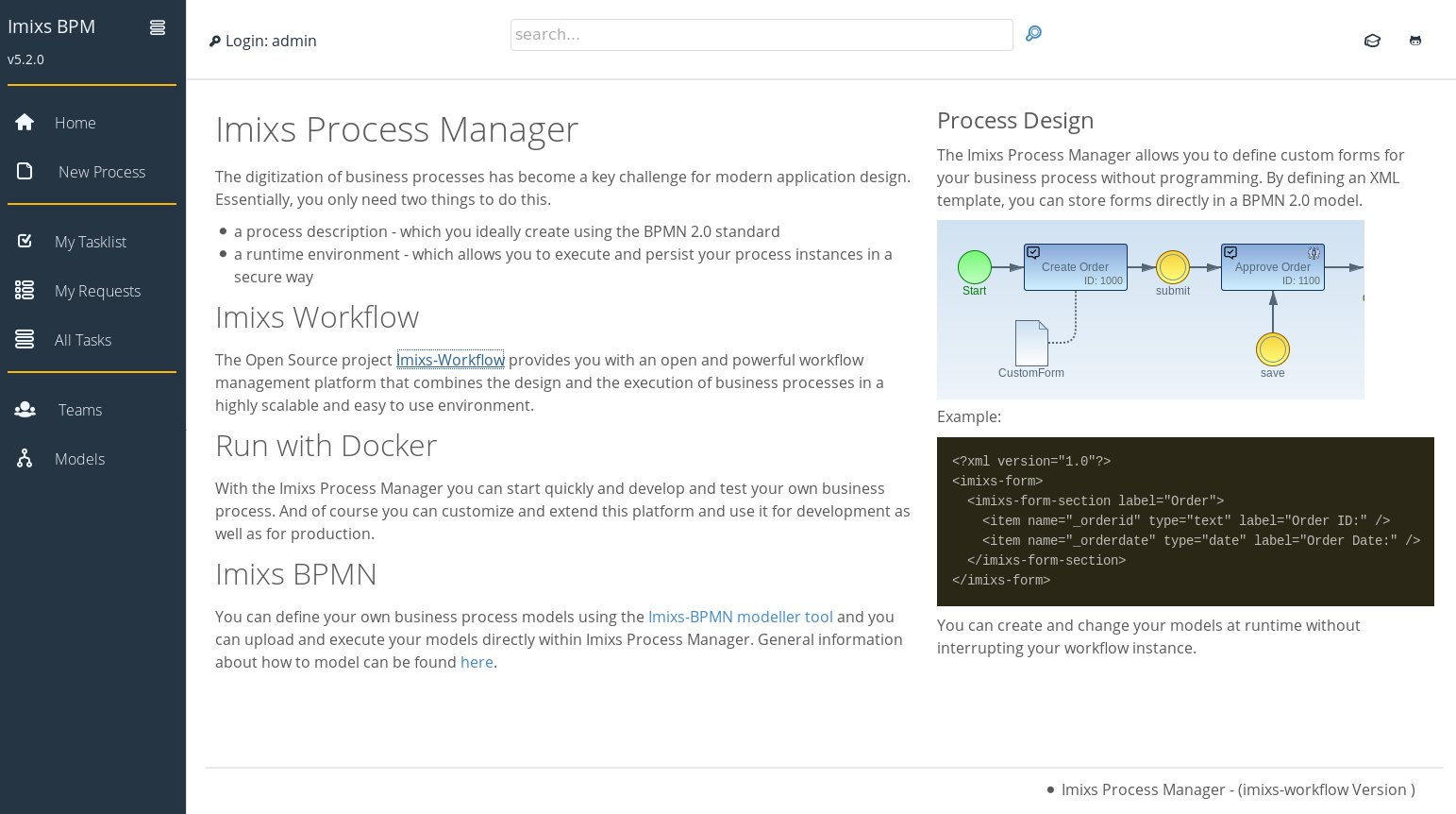 Imixs-Workflow is the open source solution for human-centric business process management. This means supporting human skills, activities and collaboration in a model driven architecture. The Imixs-Workflow engine protects and securely distributes your business data based on the BPMN 2.0 standard.