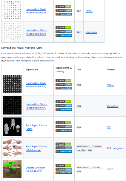 - Examples including image recognition, object detection, and gesture classification